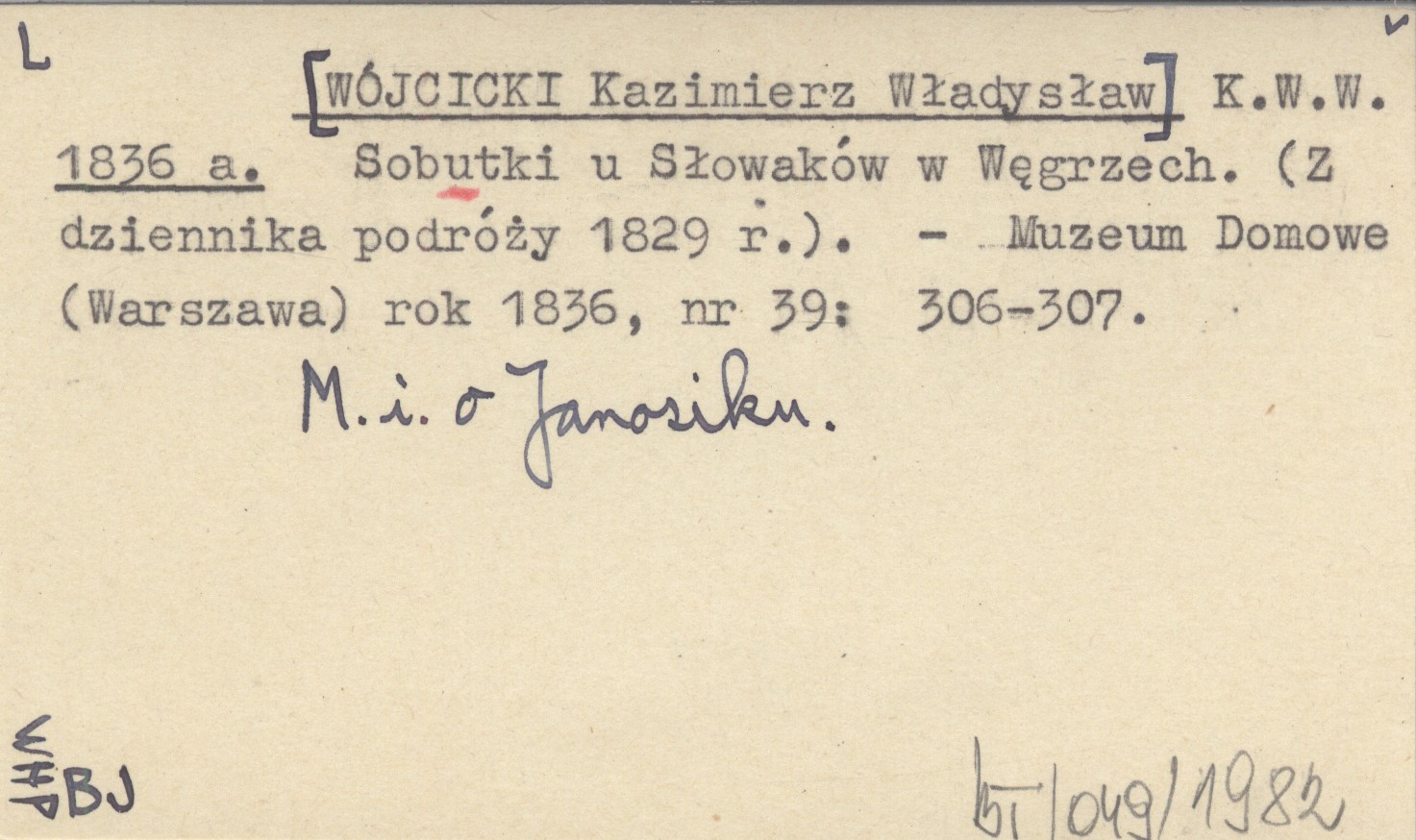 K.W.W. [WÓJCICKI Kazimierz Władysław] 1836 a Sobutki u Slowaków w Węgrzech. (Z dziennika podróży 1829 r.).