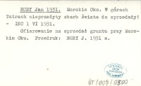 BURY Jan 1931 a Morskie Oko. W górach Tatrach nieprzeżyty skarb świata do sprzedaży!