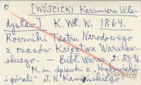 K. Wł. W. [WÓJCICKI Kazimierz Władysław] 1864 Roczniki Teatru Narodowego z czasów Księztwa Warszawskiego.
