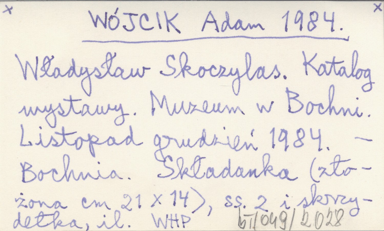 WÓJCIK Adam 1984 Władysław Skoczylas. Katalog wystawy. Muzeum w Bochni. Listopad grudzień 1984.