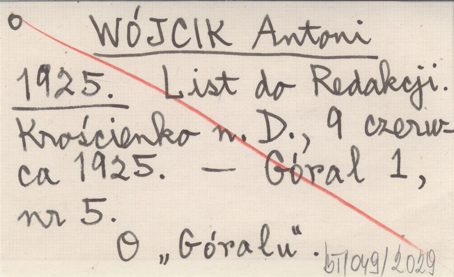 WÓJCIK Antoni 1925 List do Redakcji. Krościenko n. D., 9 czerwca 1925.