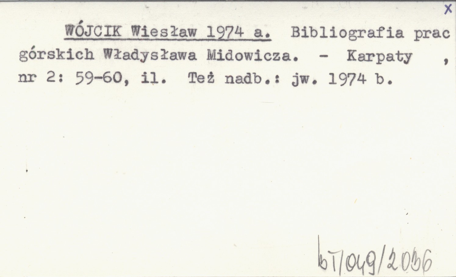 WÓJCIK Wiesław 1974 a Bibliografia prac górskich Władysława Midowicza.