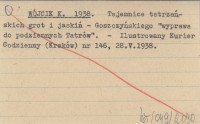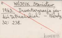 WÓJCIK Stanisław 1963 Inwentaryzacja jaskiń tatrzańskich.
