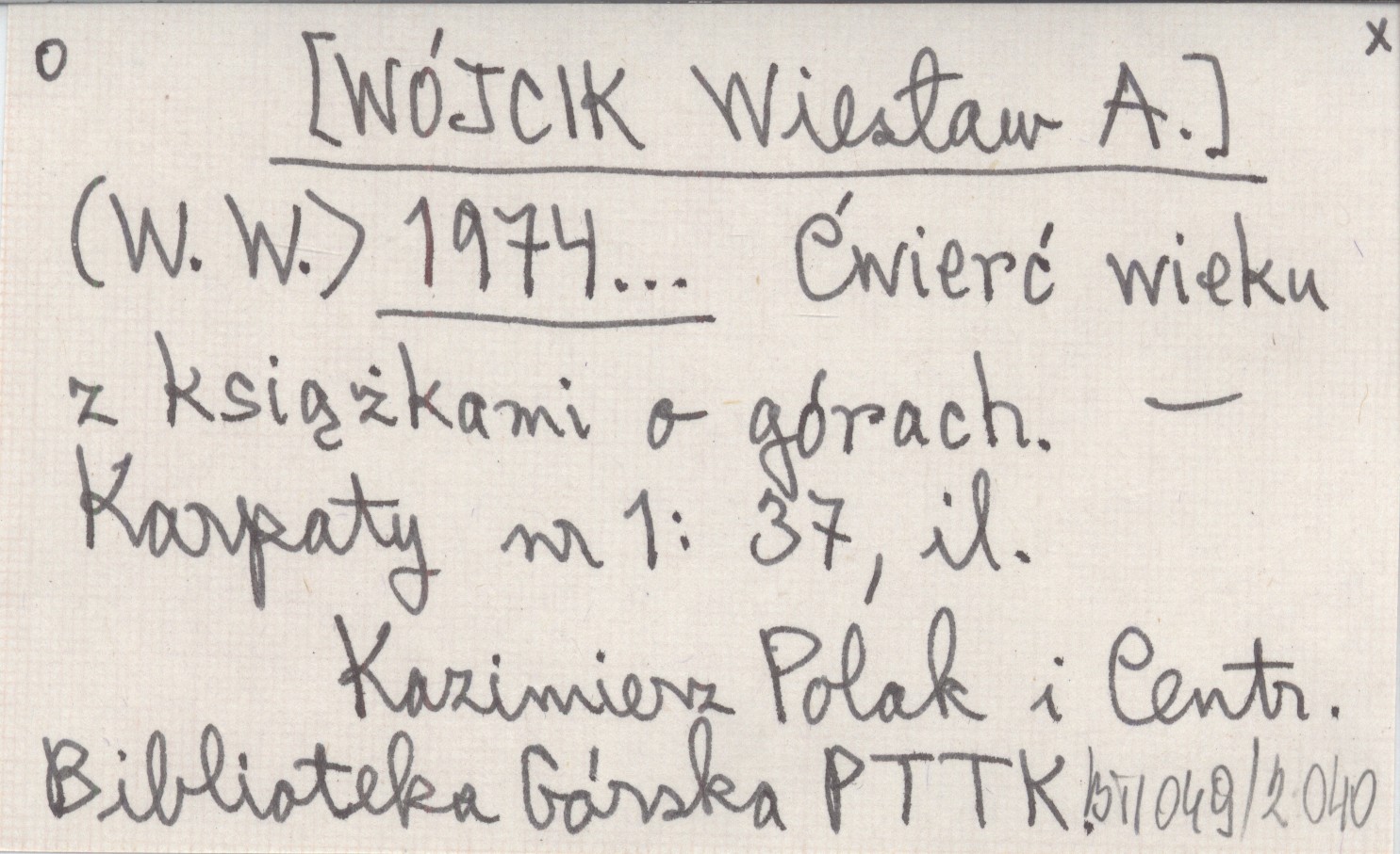 (W. W.) [WÓJCIK Wiesław A.] 1974... Ćwierć wieku z książkami o górach.