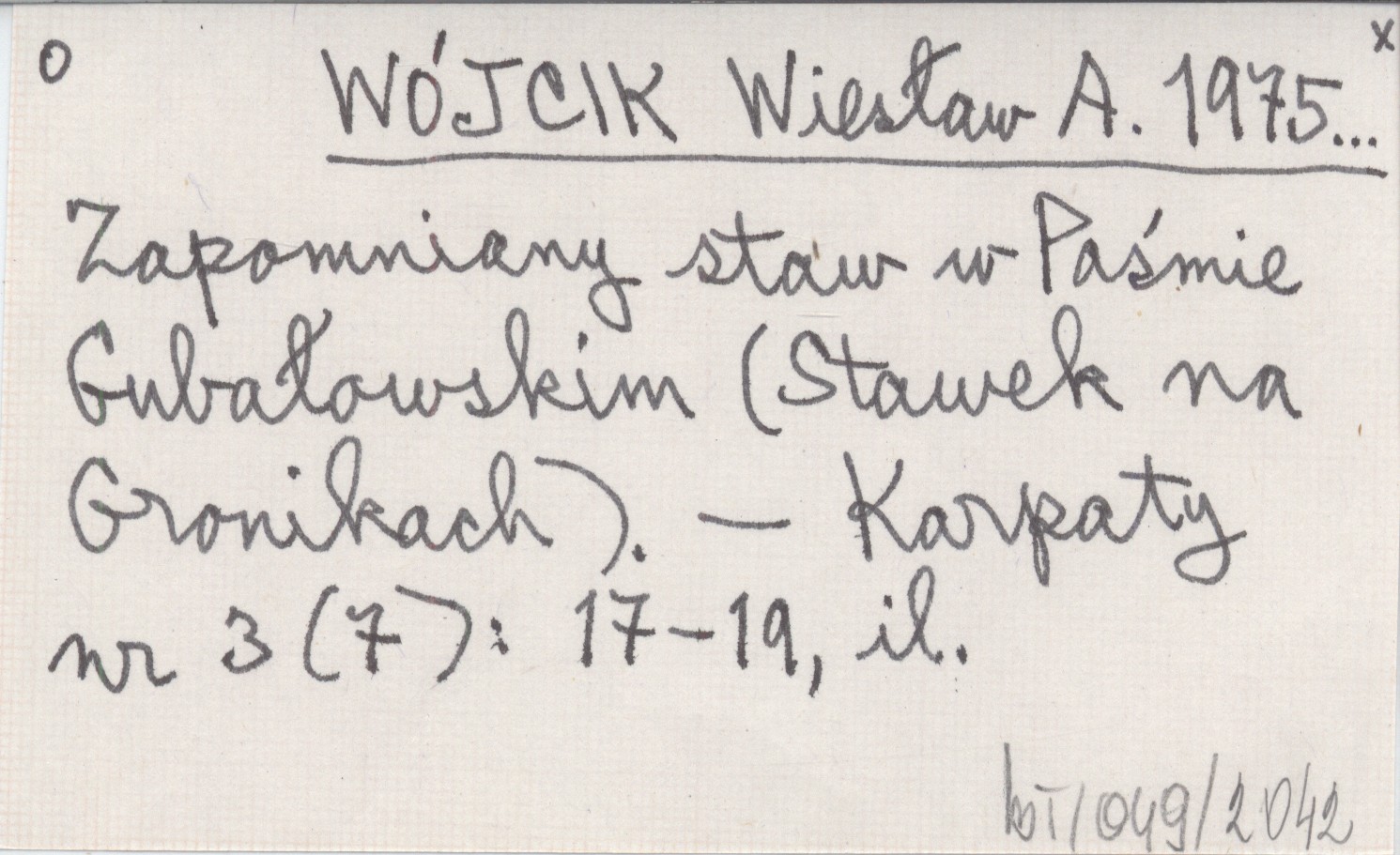 WÓJCIK Wiesław A. 1975... Zapomniany staw w Paśmie Gubałowskim (Stawek na Gronikach).