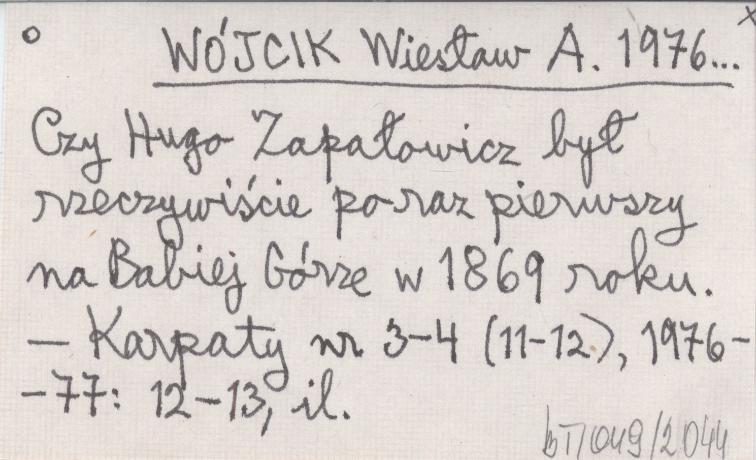 WÓJCIK Wiesław A. 1976... Czy Hugo Zapałowicz był rzeczywiście po raz pierwszy na Babiej Górze w 1869 roku.