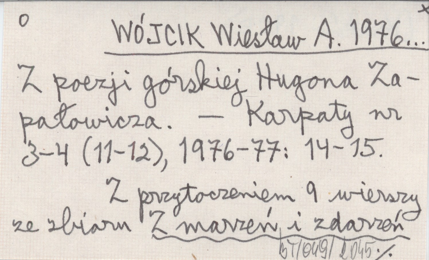 WÓJCIK Wiesław A. 1976... Z poezji górskiej Hugona Zapałowicza.