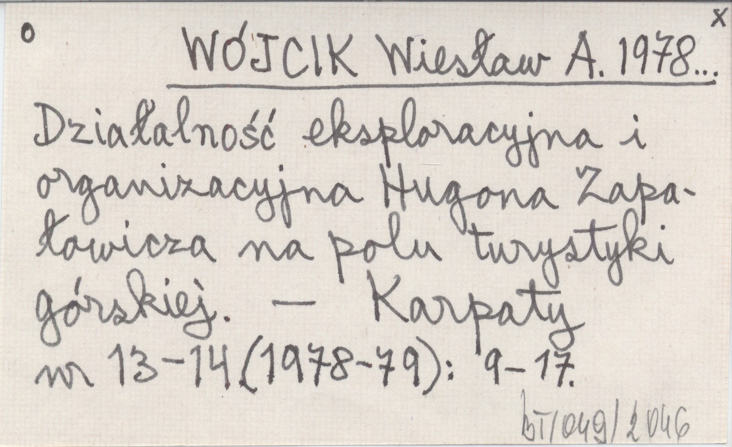 WÓJCIK Wiesław A. 1978... Działalność eksploracyjna i organizacyjna Hugona Zapałowicza na polu turystyki górskiej.