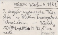 WÓJCIK Wiesław A. 1981 Z dziejów wydawania "Wierchów" w Polskim Towarzystwie Tatrzańskim.