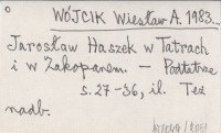 WÓJCIK Wiesław A. 1983... Jarosław Haszek w Tatrach i w Zakopanem.