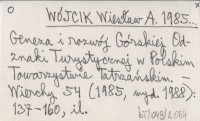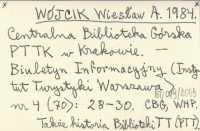 WÓJCIK Wiesław A. 1984 Centralna Biblioteka Górska PTTK w Krakowie.