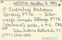 WÓJCIK Wiesław A. 1992 O Centralnej Bibliotece Górskiej PTTK.