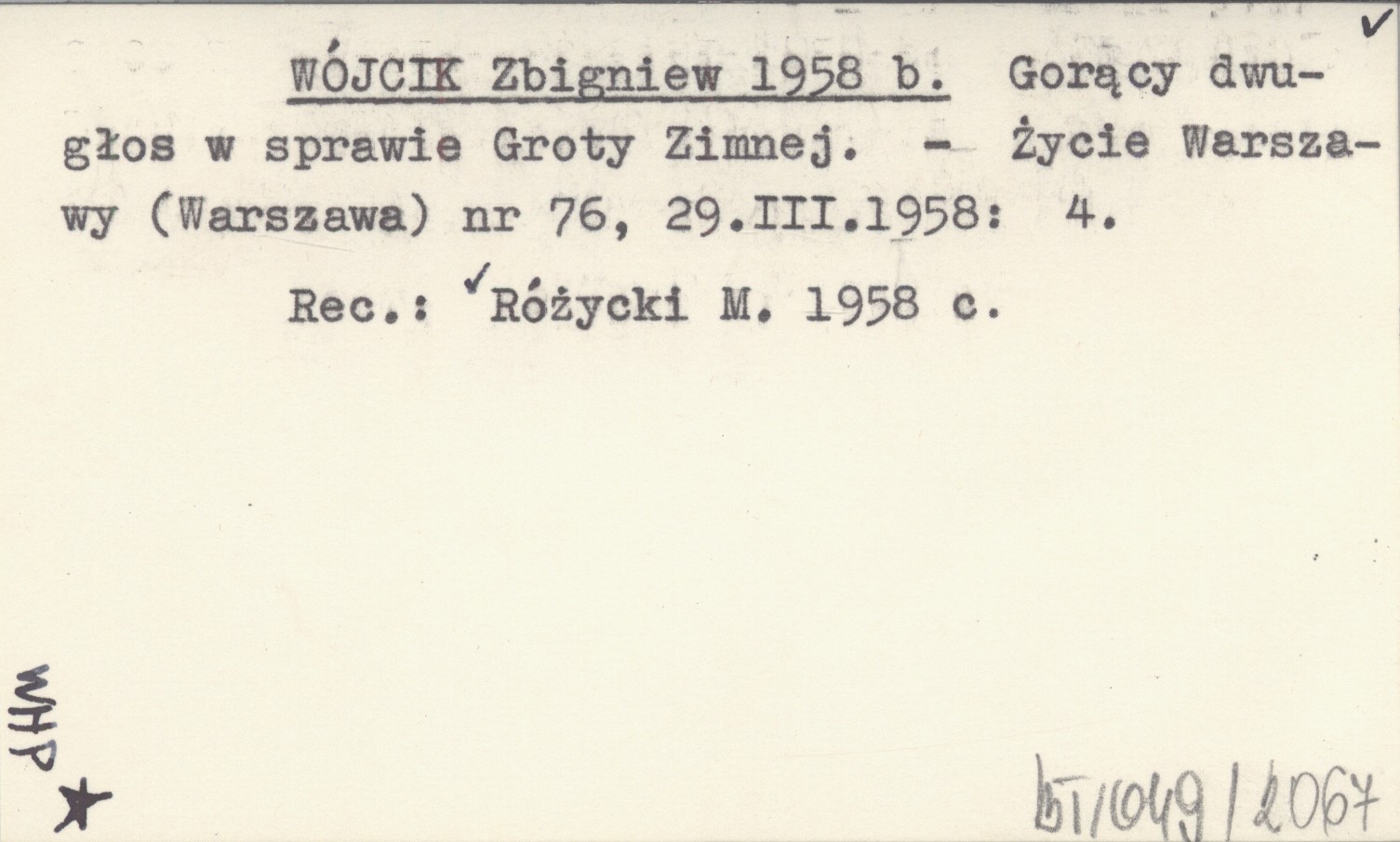 WÓJCIK Zbigniew 1958 b Gorący dwugłos w sprawie Groty Zimnej.