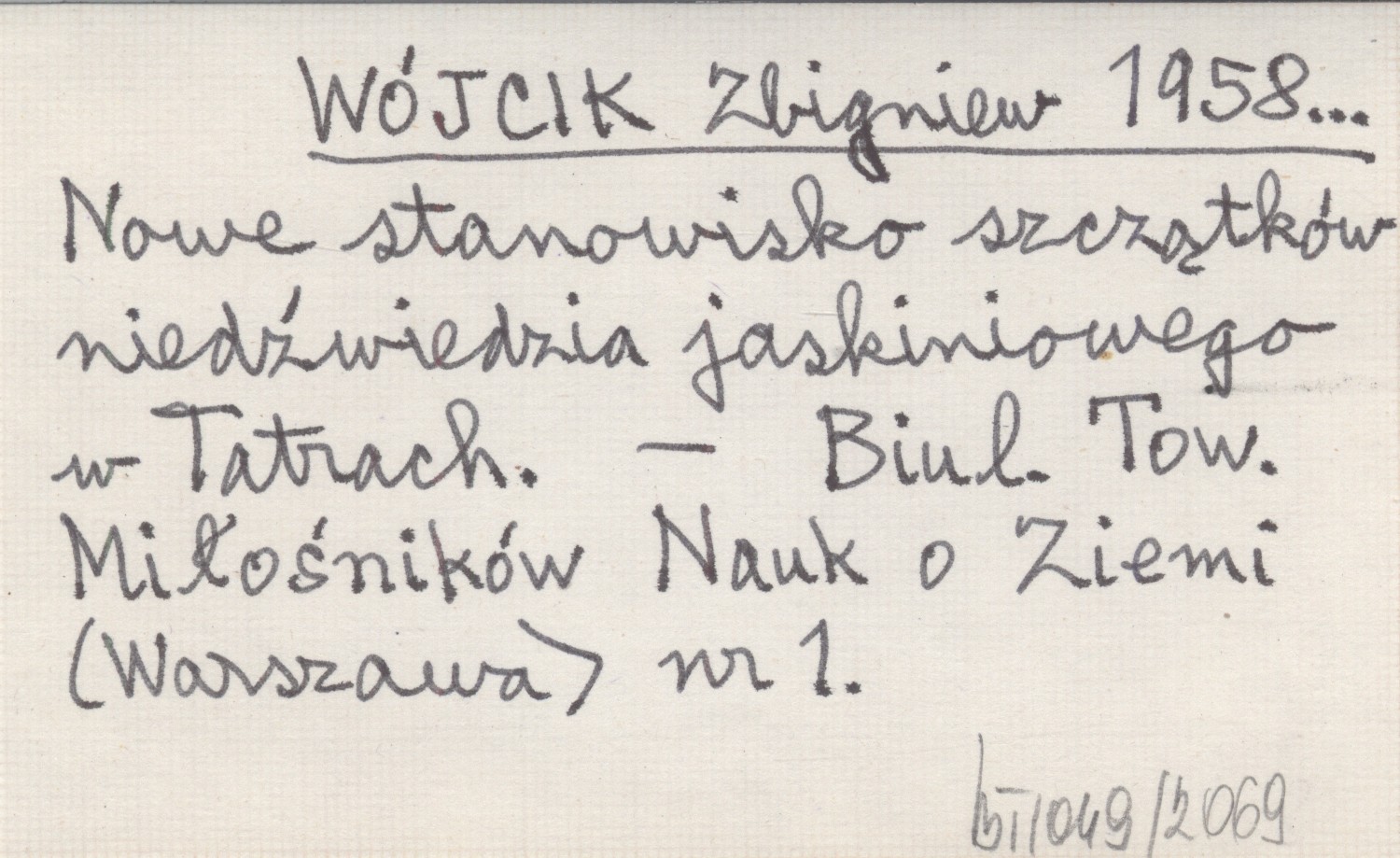 WÓJCIK Zbigniew 1958... Nowe stanowisko szczątków niedźwiedzia jaskiniowego w Tatrach.