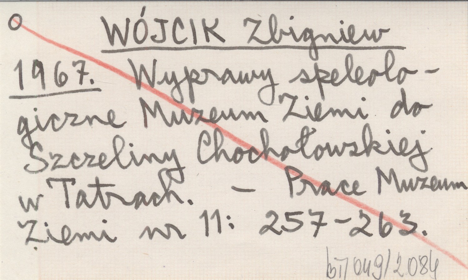 WÓJCIK Zbigniew 1967 Wyprawy speleologiczne Muzeum Ziemi do Szczeliny Chochołowskiej w Tatrach.
