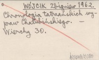 WÓJCIK Zbigniew 1962 Chronologia tatrzańskich wypraw Chałubińskiego.