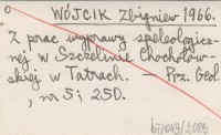 WÓJCIK Zbigniew 1963 Badania speleologiczne w Tatrach w latach 1961-1962.