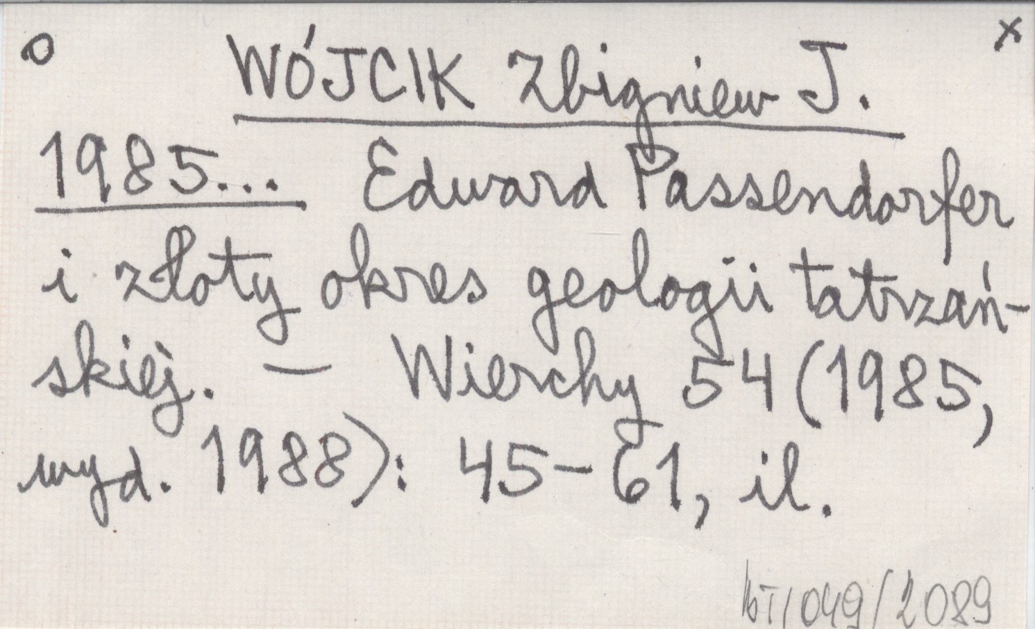 WÓJCIK Zbigniew J. 1985... Edward Passendorfer i złoty okres geologii tatrzańskiej.