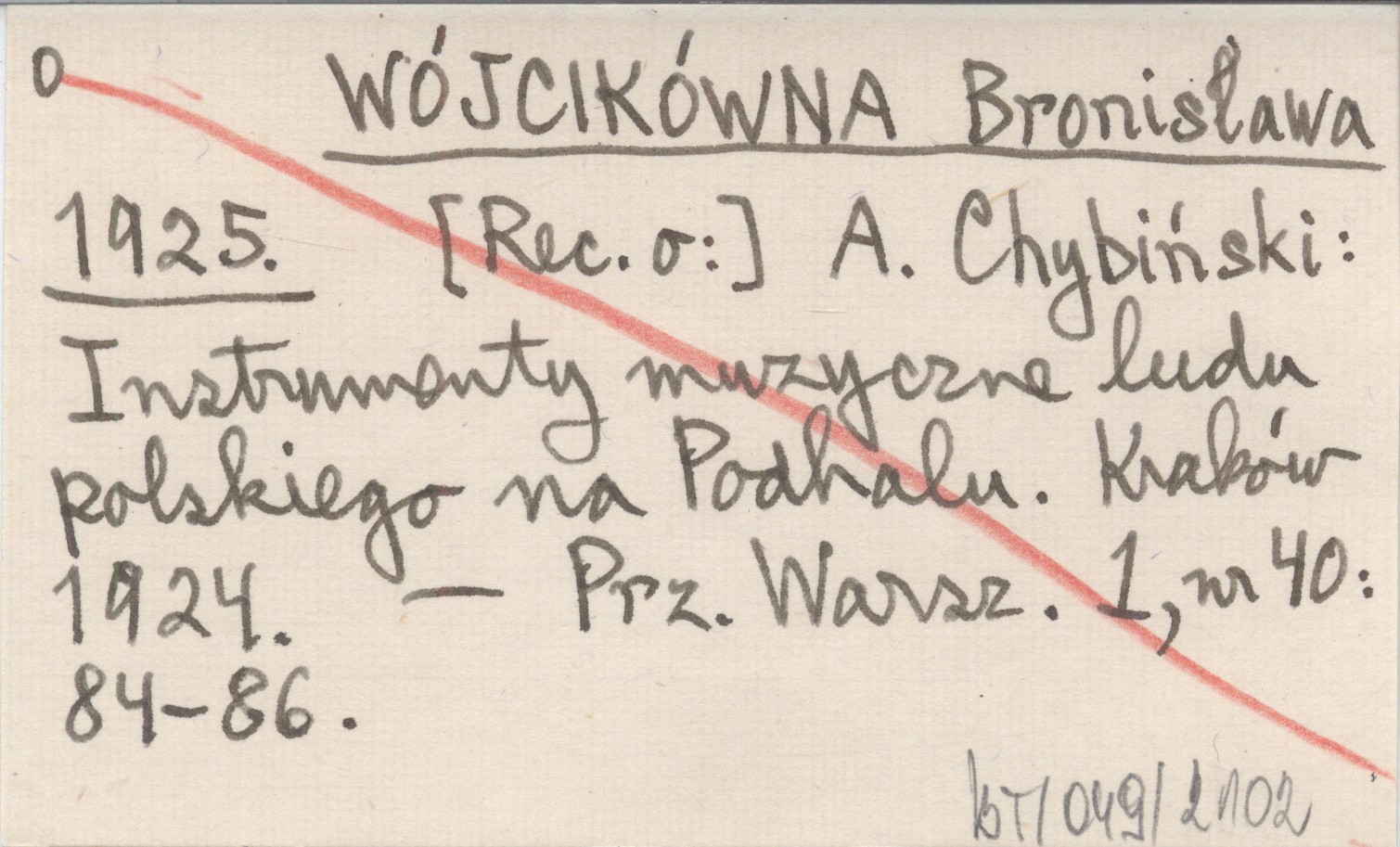 WÓJCIKÓWNA Bronisława 1925 A. Chybiński: Instrumenty muzyczne ludu polskiego na Podhalu. Kraków 1924.