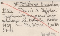WÓJCIKÓWNA Bronisława 1925 A. Chybiński: Instrumenty muzyczne ludu polskiego na Podhalu. Kraków 1924.