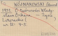 WÓJNAROWSKI Edmund 1951 O twórczości Władysława Orkana.