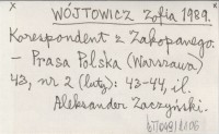 WÓJTOWICZ Zofia 1989 Korespondent z Zakopanego.