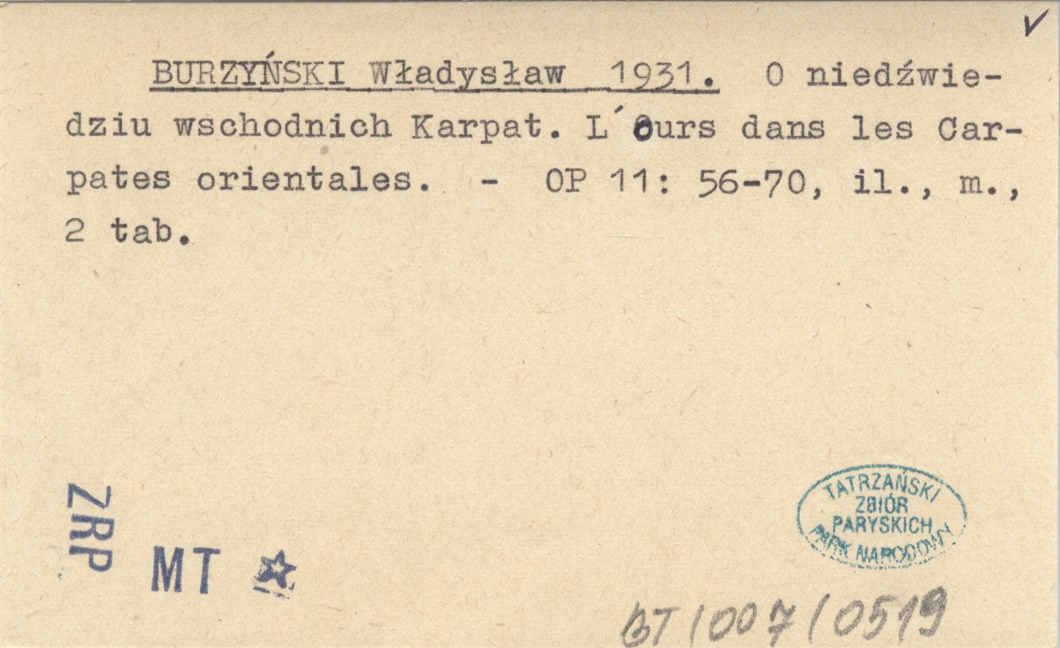 BURZYŃSKI Władysław 1931 O niedźwiedziu wschodnich Karpat. L'ours dans les Carpates orientales.
