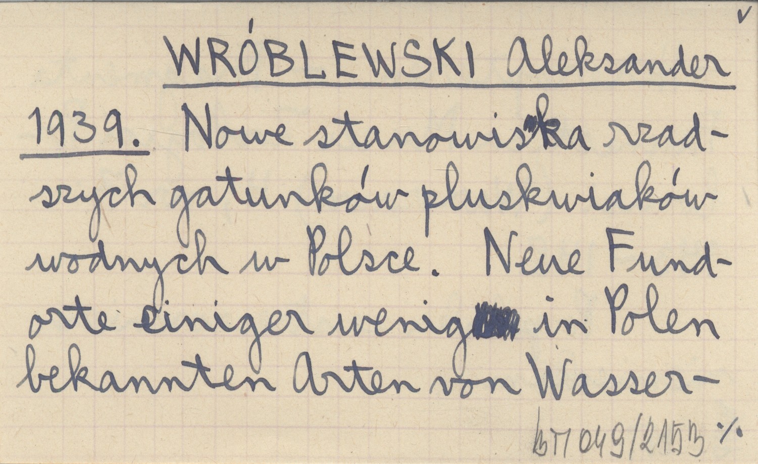 WRÓBLEWSKI Aleksander 1939 Nowe stanowiska rzadszych gatunków pluskwiaków wodnych w Polsce. Neue Fundorte einiger wenig in Polen bekannten Arten von Wasser-Heteropteren.