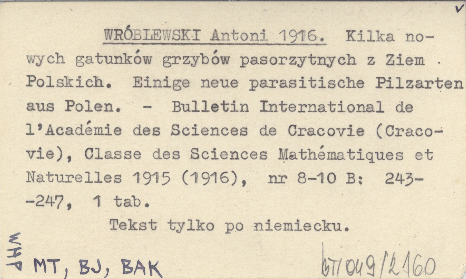 WRÓBLEWSKI Antoni 1916 Kilka nowych gatunków grzybów pasorzytnych z Ziem Polskich. Einige neue parasitische Pilzarten aus Polen.