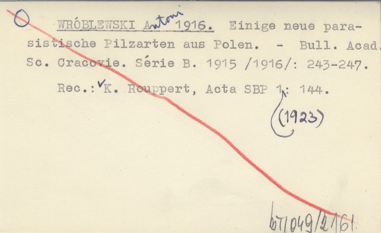 WRÓBLEWSKI Antoni 1916 Einige neue parasistische Pilzarten aus Polen.