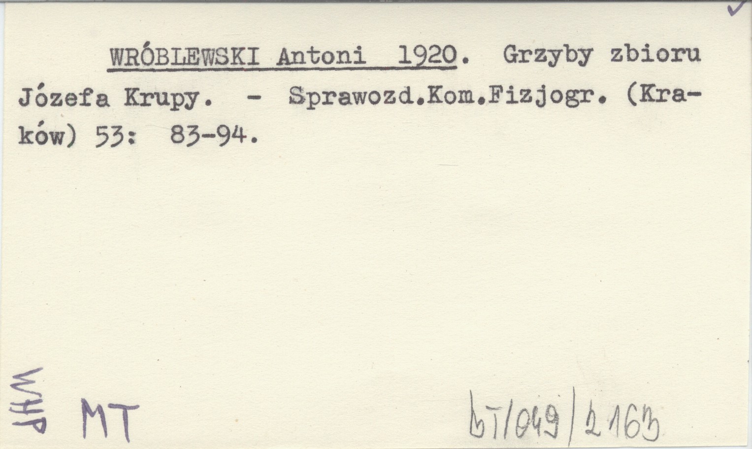 WRÓBLEWSKI Antoni 1920 Grzyby zbioru Józefa Krupy.