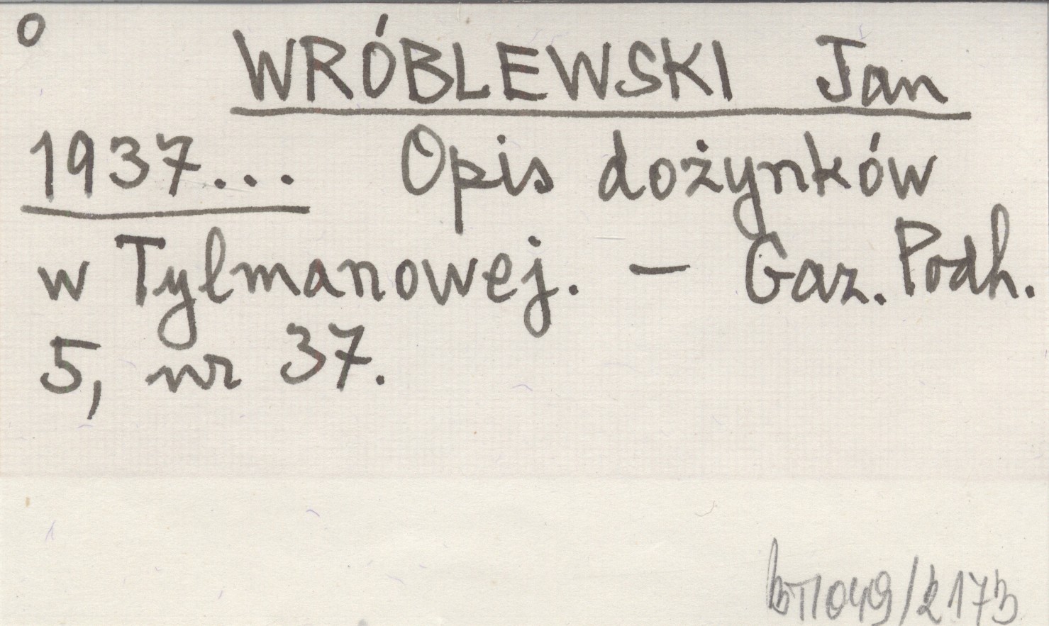 WRÓBLEWSKI Jan 1937... Opis dożynków w Tylmanowej.