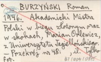 BURZYŃSKI Roman 1946 Akademicki Mistrz Polski w biegu złożonym oraz w skokach, Marian Orlewicz, z Uniwersytetu Jagiellońskiego.