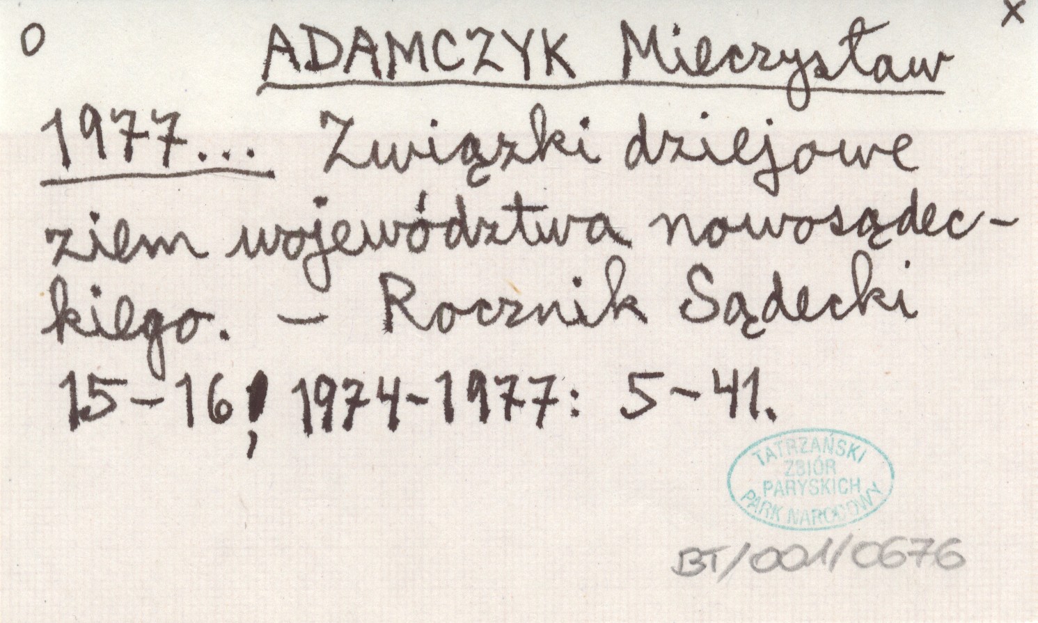 ADAMCZYK Mieczysław 1977... Związki dziejowe ziem województwa nowosądeckiego.