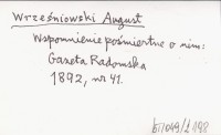 WRZEŚNIOWSKI August 1892 [Wspomnienie pośmiertne o nim.]