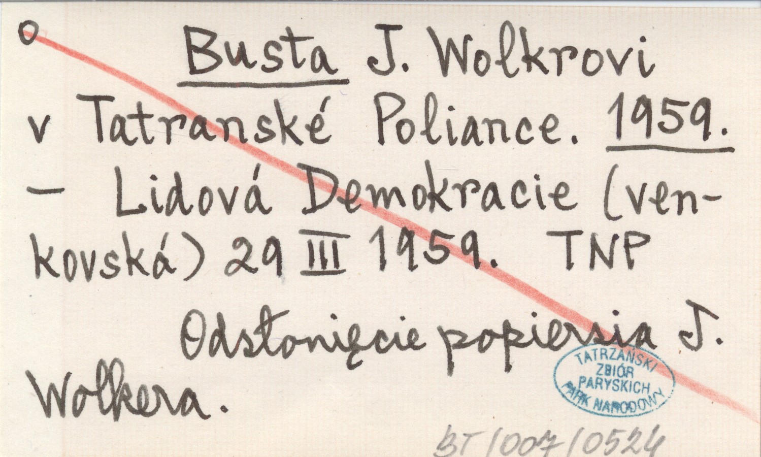 Lidová Demokracie (venskovská), 29 III 1959. Odsłonięcie popiersia J. Wolkera.