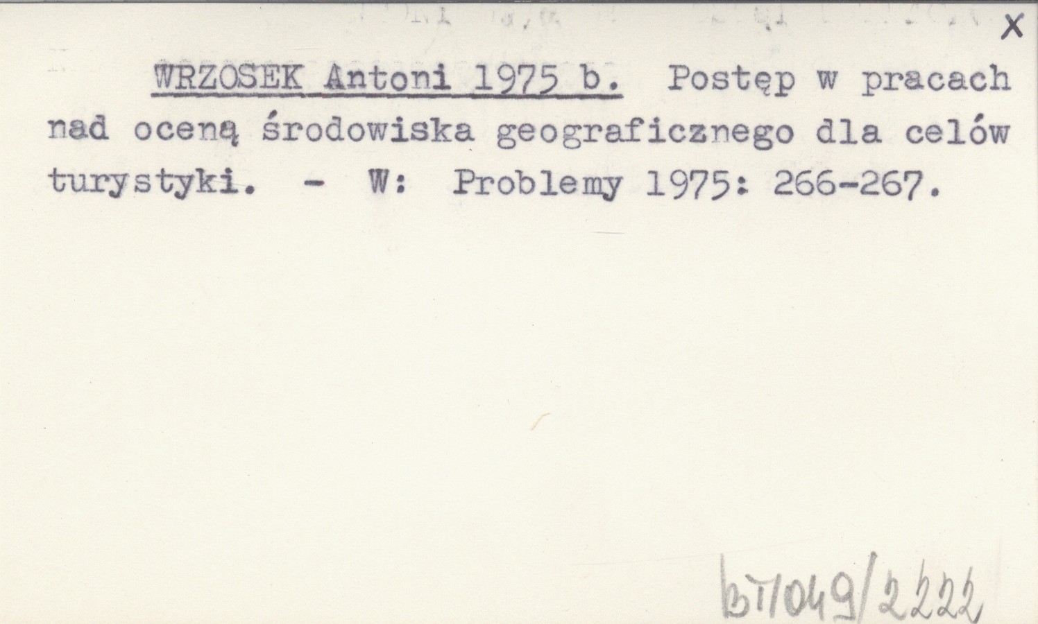 WRZOSEK Antoni 1975 b Postęp w pracach nad oceną środowiska geograficznego dla celów turystyki.
