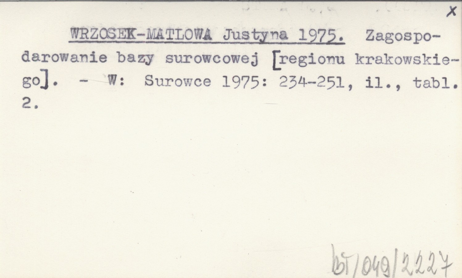 WRZOSEK-MATLOWA Justyna 1975 Zagospodarowanie bazy surowcowej [regionu krakowskiego].
