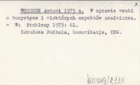 WRZOSEK Antoni 1975 a W sprawie nauki o turystyce i niektórych aspektów osadnictwa.