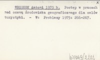 WRZOSEK Antoni 1975 b Postęp w pracach nad oceną środowiska geograficznego dla celów turystyki.