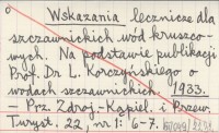 Wskazania lecznicze dla szczawnickich wód kruszcowych. Na podstawie publikacji Prof. Dr L. Korczyńskiego o wodach szczawnickich. 1933