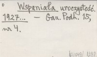 Wspaniała uroczystość. 1927...