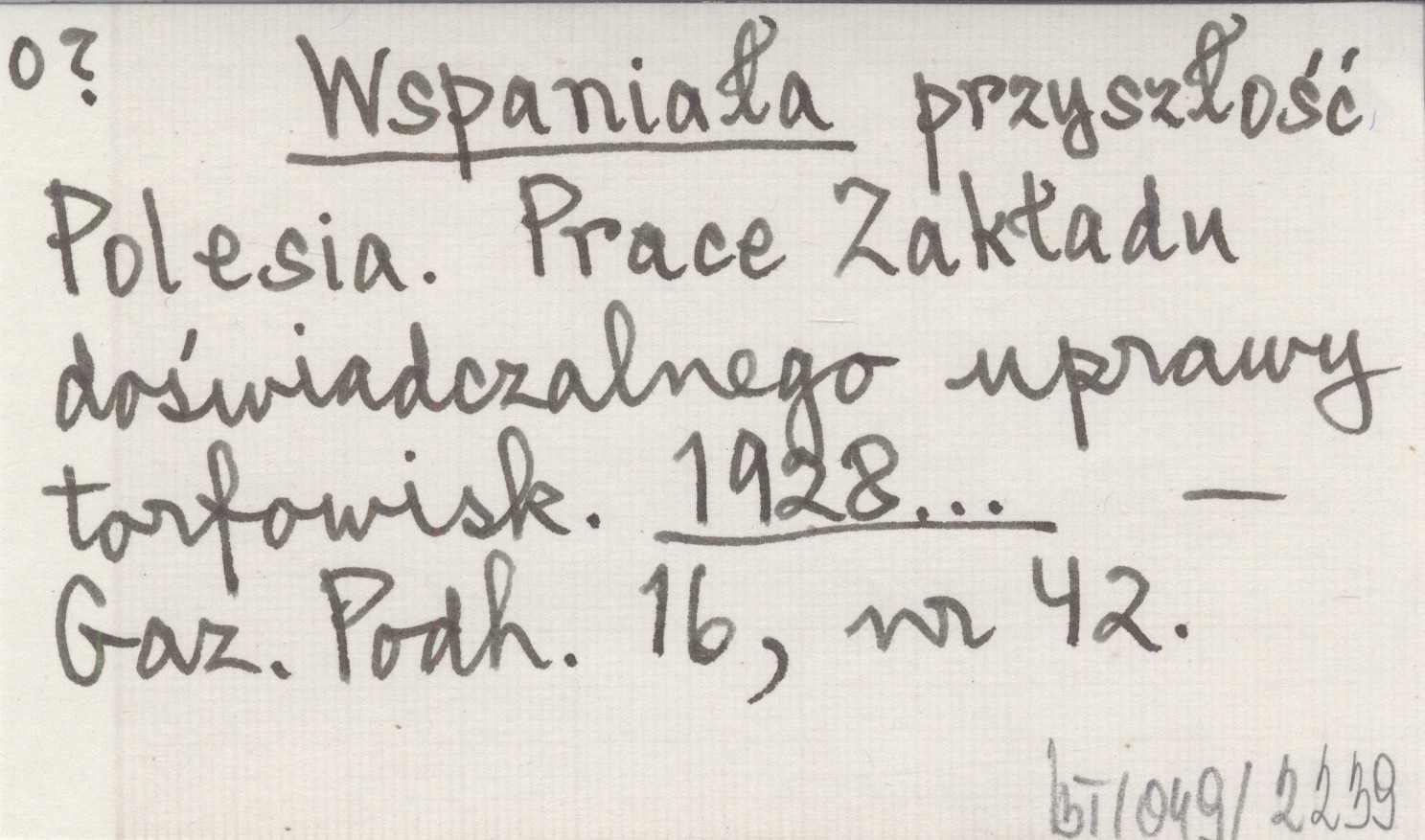 Wspaniała przyszłość Polesia. Prace Zakładu doświadczalnego uprawy torfowisk. 1928...