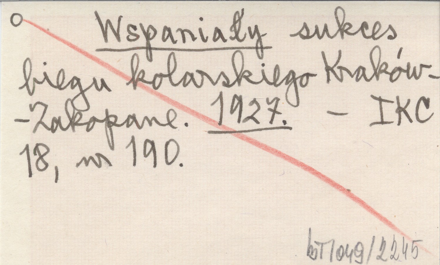 Wspaniały sukces biegu kolarskiego Kraków-Zakopane. 1927