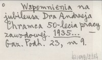 Wspomnienia na jubileusz Dra Andrzeja Chramca 50-lecia pracy zawodowej. 1935...