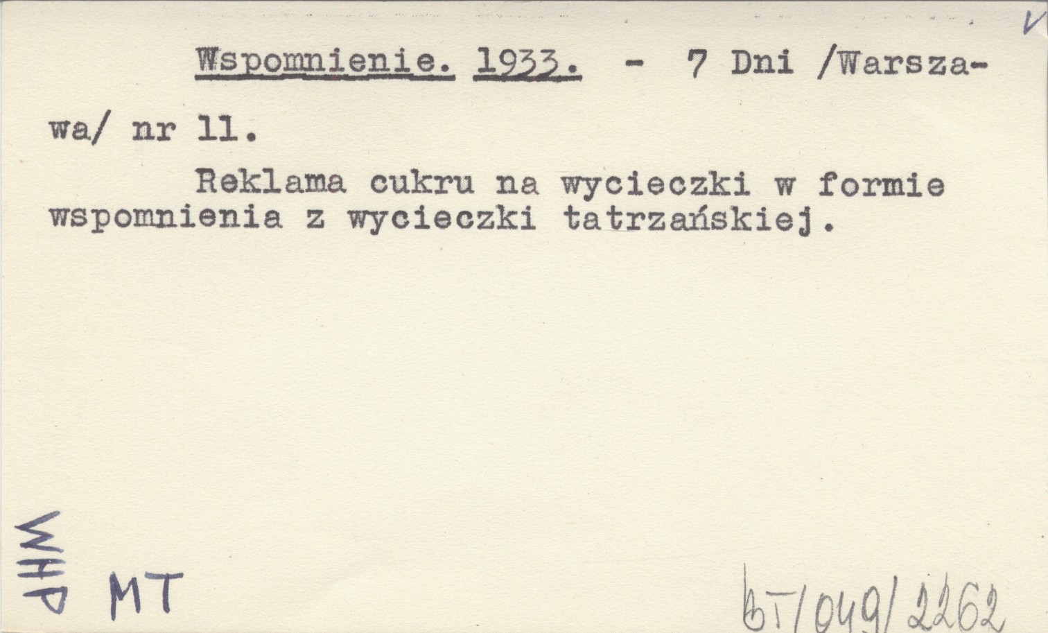 7 Dni (Warszawa) , Nr 11. Reklama cukru na wycieczki w formie wspomnienia z wycieczki tatrzańskiej.