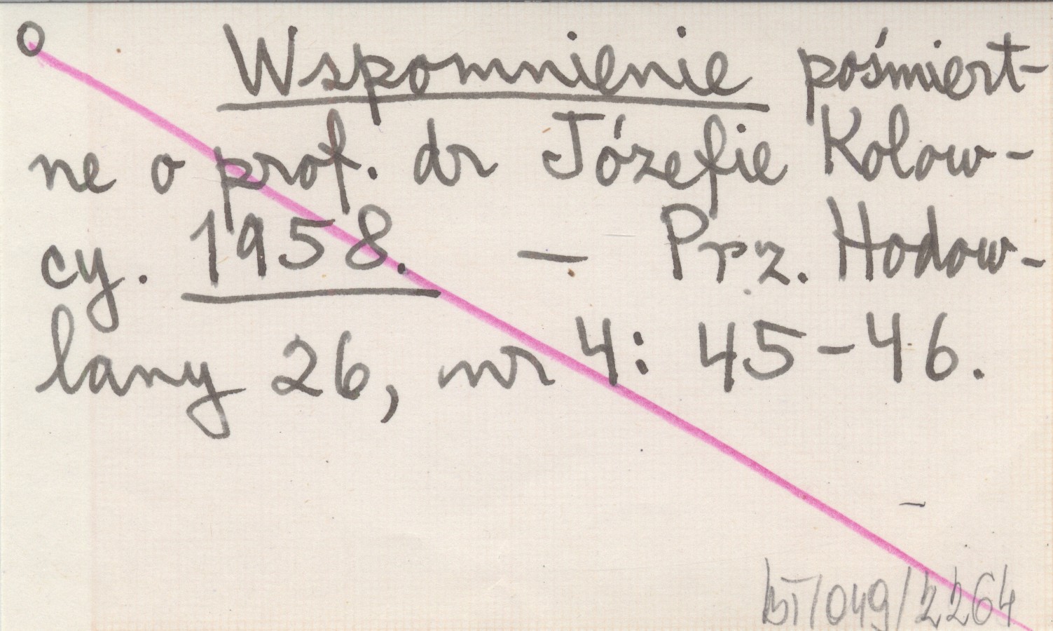 Wspomnienie pośmiertne o prof. dr Józefie Kolowcy. 1958