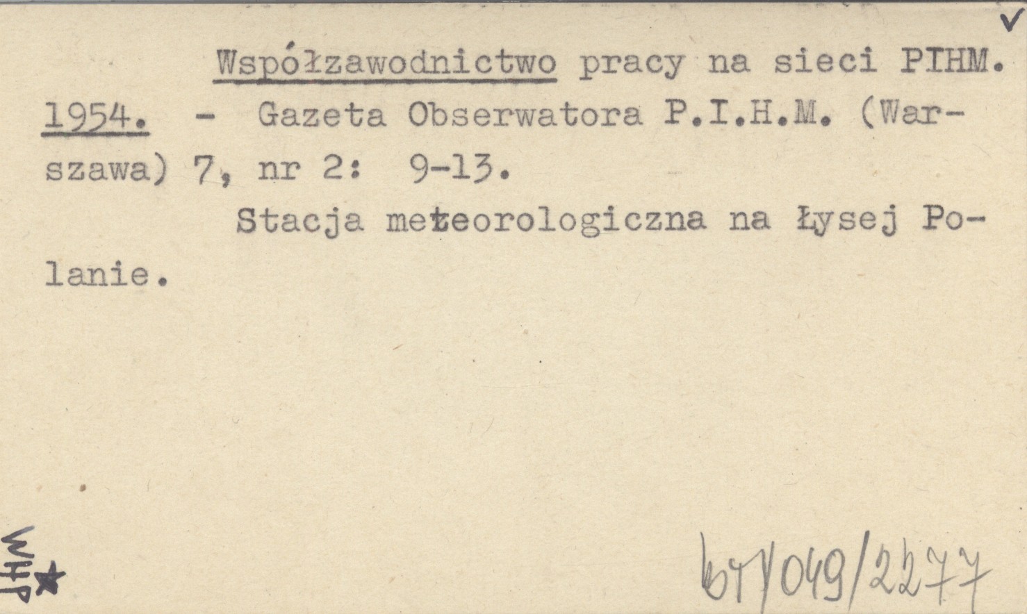 Gazeta Obserwatora P.I.H.M. (Warszawa) , 7, nr 2: 9-13. Stacja meteorologiczna na Łysej Polanie.