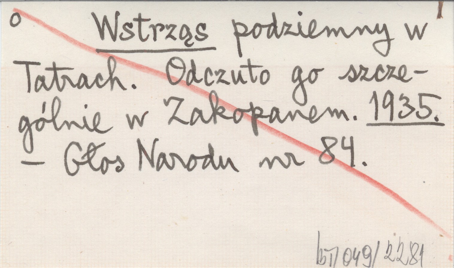 Wstrząs podziemny w Tatrach. Odczuto go szczególnie w Zakopanem. 1935