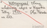 Wstrzymywać tłumy młodzieży idące w Wysokie Tatry. 1933